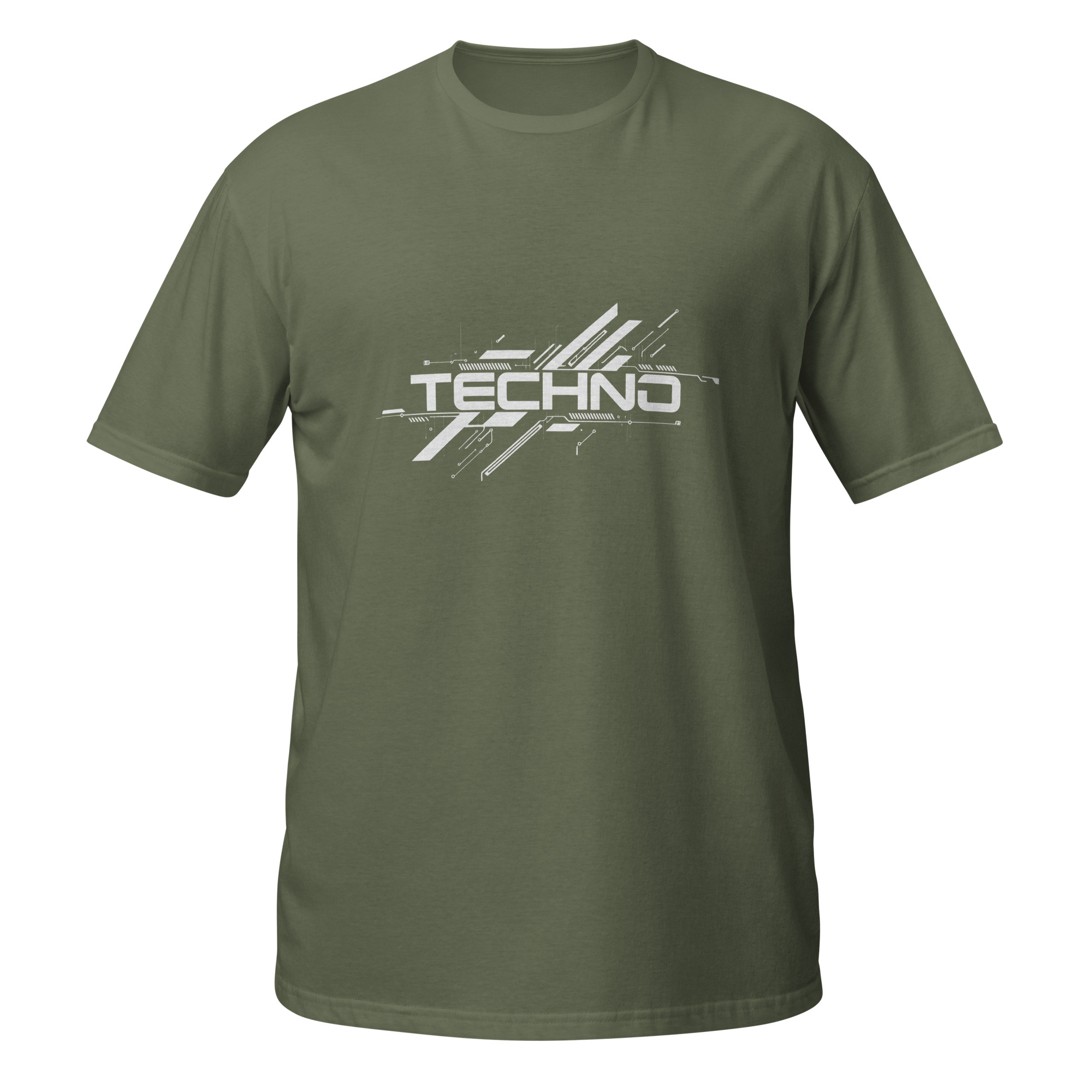 Ce design typographique met en avant le mot techno avec une composition graphique marquée, composée de lignes fragmentées et d’éléments dynamiques.